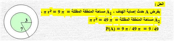 ( i2) يسدد أحمد بندقيته نحو الهدف كما في الشكل أدناه , ما احتمال أن يصيب المنطقة المظللة ؟