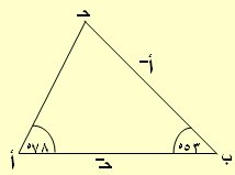 < حـ = 180 − ( 53 + 78) = 180 − 131 = 49ه "مجموع زوايا المثلث = 180"