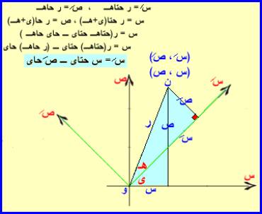 ، وبالتعويض في معادلتي الدوران س = س/ حتاى – ص/ حاى س = س/ حتا45 – ص/ حا45 |