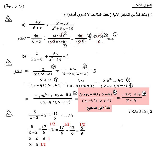 للخطأ في الجزء الثاني من السؤال الثالث أعلاه -