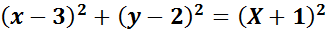 مثلا: المعادلة لقطع بؤرته (2، 3) ودليلع x + 1 = 0 هي:
