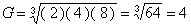 والوسط الهندسي للكميات 2 ، 4 ، 8 هو الجذر التكعيبي لناتج ضربهم ويساوي 4 لأن 2 × 4 × 8 = 64