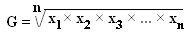 الوسط الهندسي لمجموعة القيم x1, x2 , x3 , .., K xn هو :