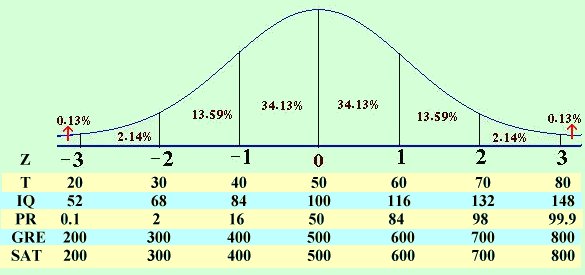 الدرجة الخام التي تقابل درجة Z = 0 والتي تعني بأن صاحبها متوسط المستوى لكون الصفر يقابل مساحة (احتمال) يساوي i0.5ولكن اللفظ صفر مبهم عند البعض بالإضافة للقيم السالبة والكسرية، لذلك اقترح بأن تضرب Z في s10ويجمع للناتج s50فنحصل على درجة جديدة تعرف بالدرجة التائية أي: